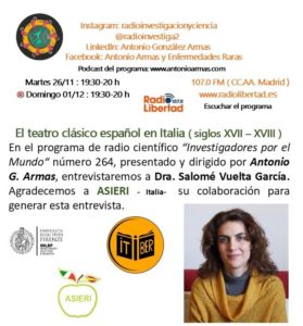 Entrevista a Salomé Vuelta – El teatro clásico español en Italia ( siglos XVII – XVIII )